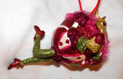 BALL ORNAMENT Frog sits atop a pearlized
